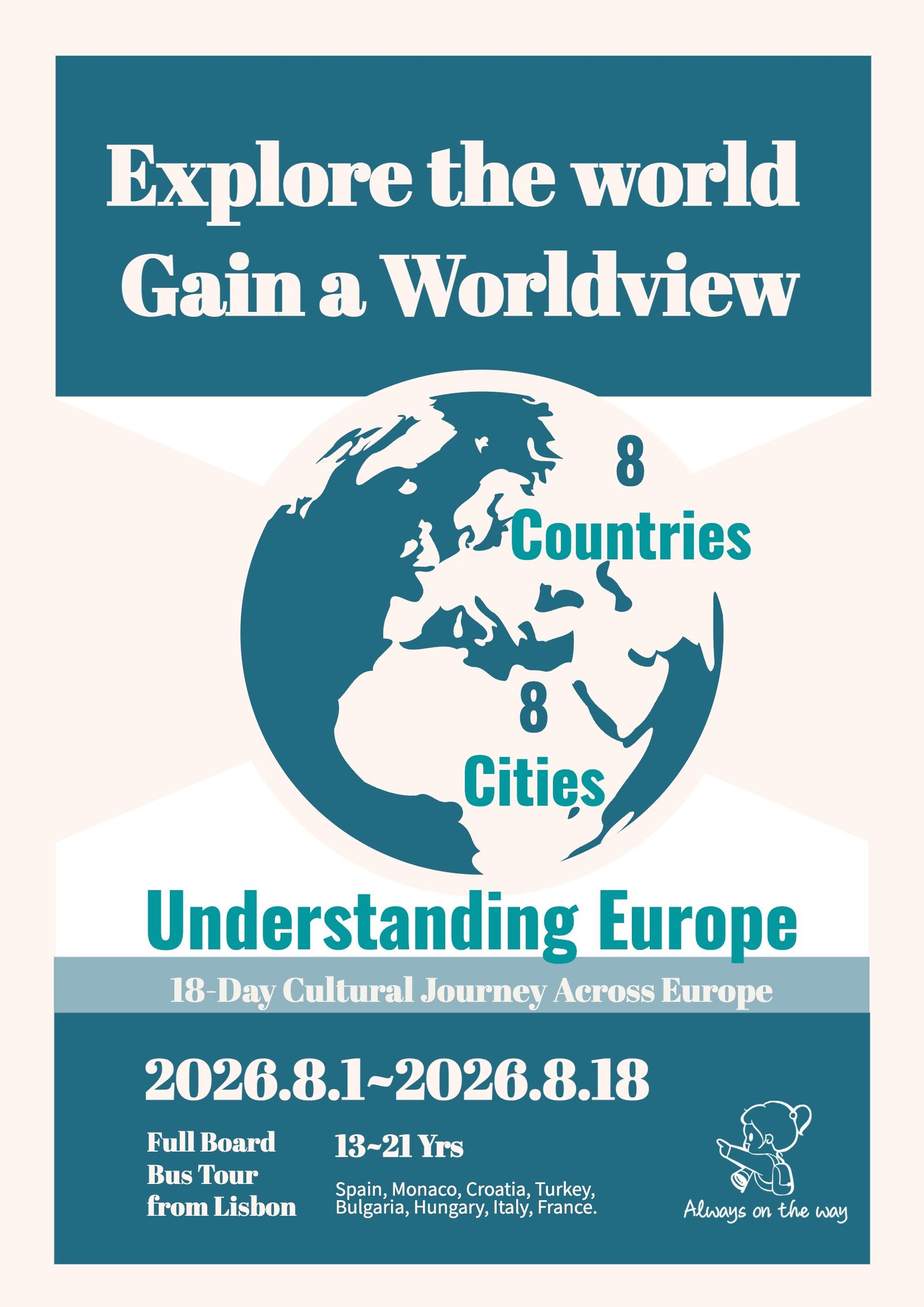 For 18 days, you will experience Europe not as a simple tourist, but as an explorer. Through interactive games, challenges, and puzzles in each destination, you will develop: